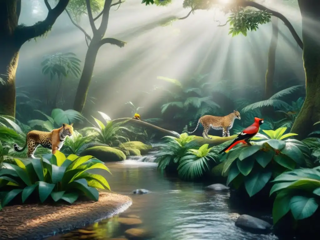 Un bosque denso en Uruguay con diversa fauna local conviviendo en armonía